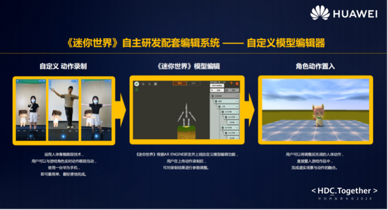 近期,《迷你世界》又与华为进行强强合作,此次主要接入了华为HMS Core AR Engine能力,将人体骨骼跟踪应用到游戏中的皮肤模型,从而实现星舞动功能。星舞动功能是指和游戏角色实时动作跟踪互动,去支持用户用最简单、轻便的动作进行内容录制,把动作数据应用到游戏内。用简单的原理解释,就是用华为手机的AR智能技术来拍摄使用者,所拍摄的内容传达到游戏端,就变成了一种骨骼和动态的动作导入,然后直接再投射到游戏的角色上面。由于华为HMSCore AR技术的接入,用这种最简单的拍摄方式,用户在短时间内自己便可以制作出一套复杂的三维游戏角色的动作,而且这些动作可以应用到很多的游戏场景里面,真正的实现了连接角色、动作,还有他的场景。